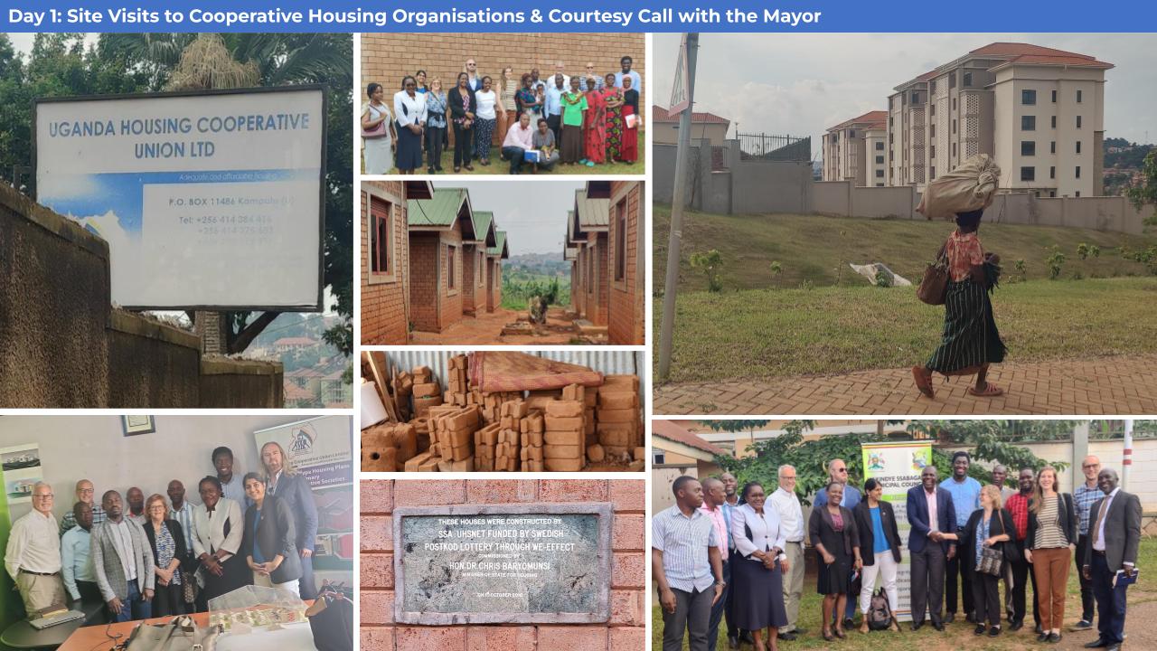 The mission kicked off with a visit to the Uganda Housing Cooperative Union in Kisaasi and the entire team appreciated how the daunting challenge of housing financing can be addressed if communities form or join housing cooperatives. This was followed with a benchmarking visit to Kwefaku Housing Cooperative in Bujuko. This women’s cooperative comprises of 34 members, largely single mothers, who were relocated from the biggest slum in Kampala, Kisenyi and whose houses were constructed using sustainable building materials specifically soil stabilized interlocking bricks.